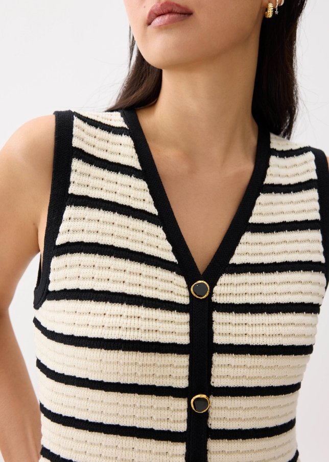 A no-brainer for your off-duty days. She’s perfect for when you want to look put-together without the effort with her stretchy knit fabric and collared neckline. Plus, her column silhouette and playful stripes do all the heavy lifting, so you can focus on more important things—like deciding where to brunch.